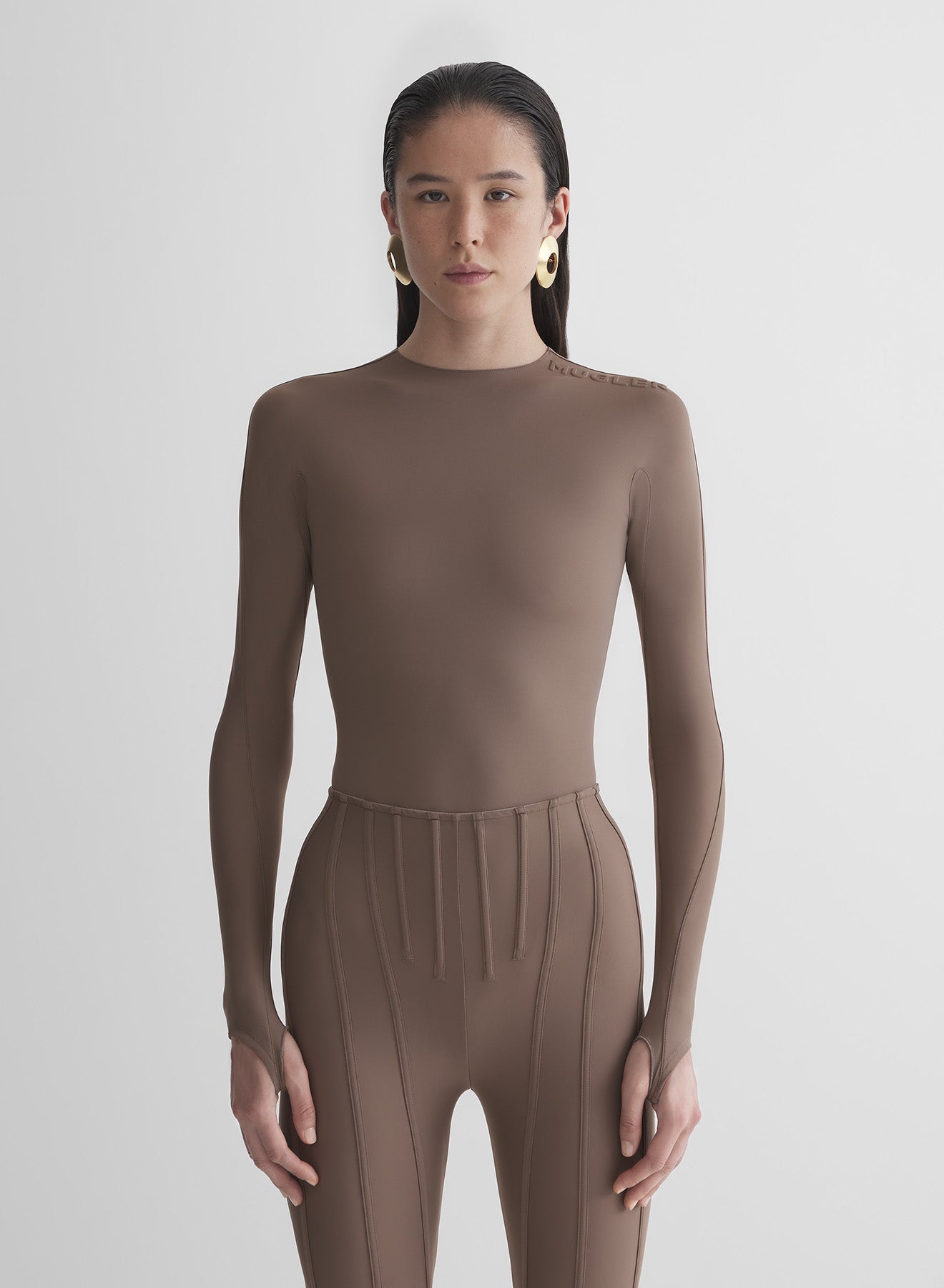 View full detailsmocha shoulder logo bodysuit