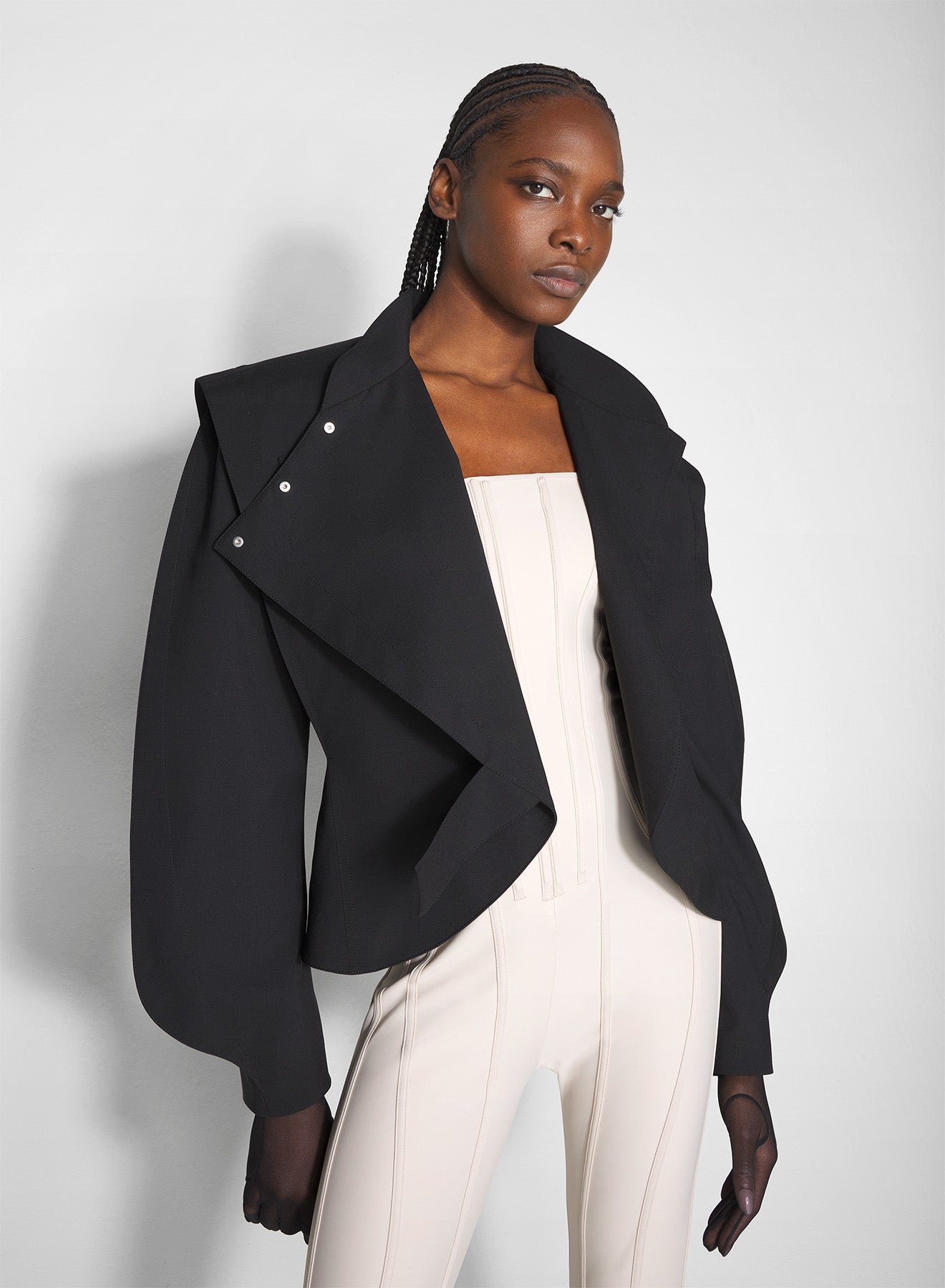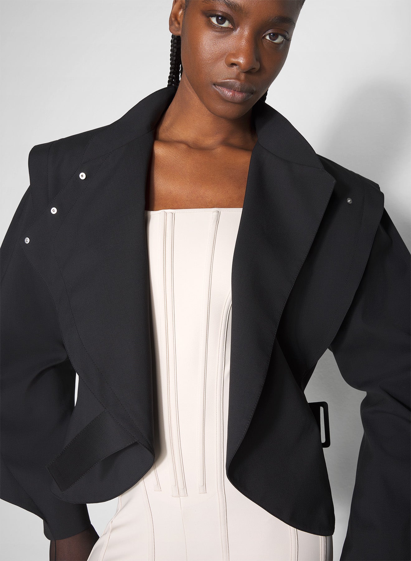 - Bodice and long legs with piped boning
