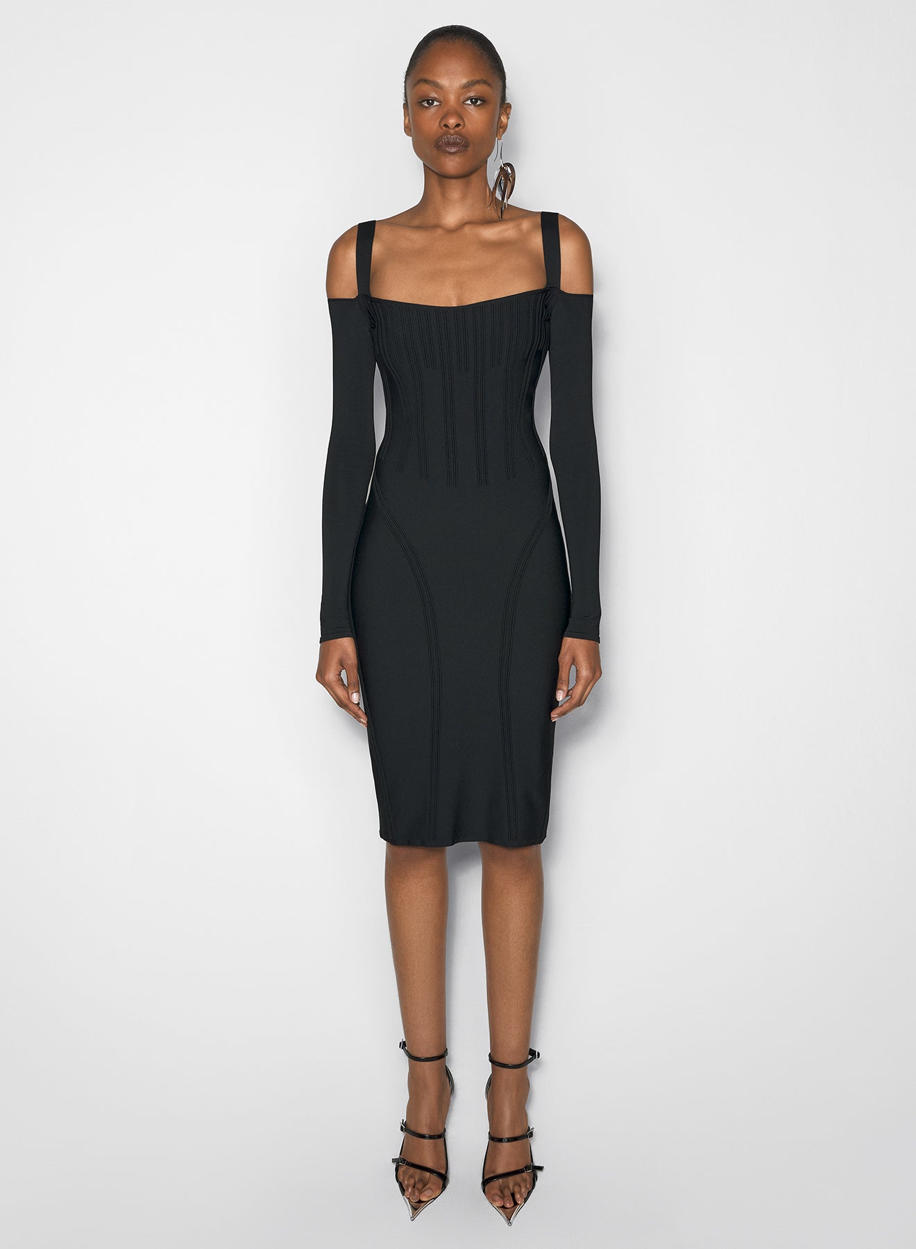 View full detailsblack boning detail knit dress