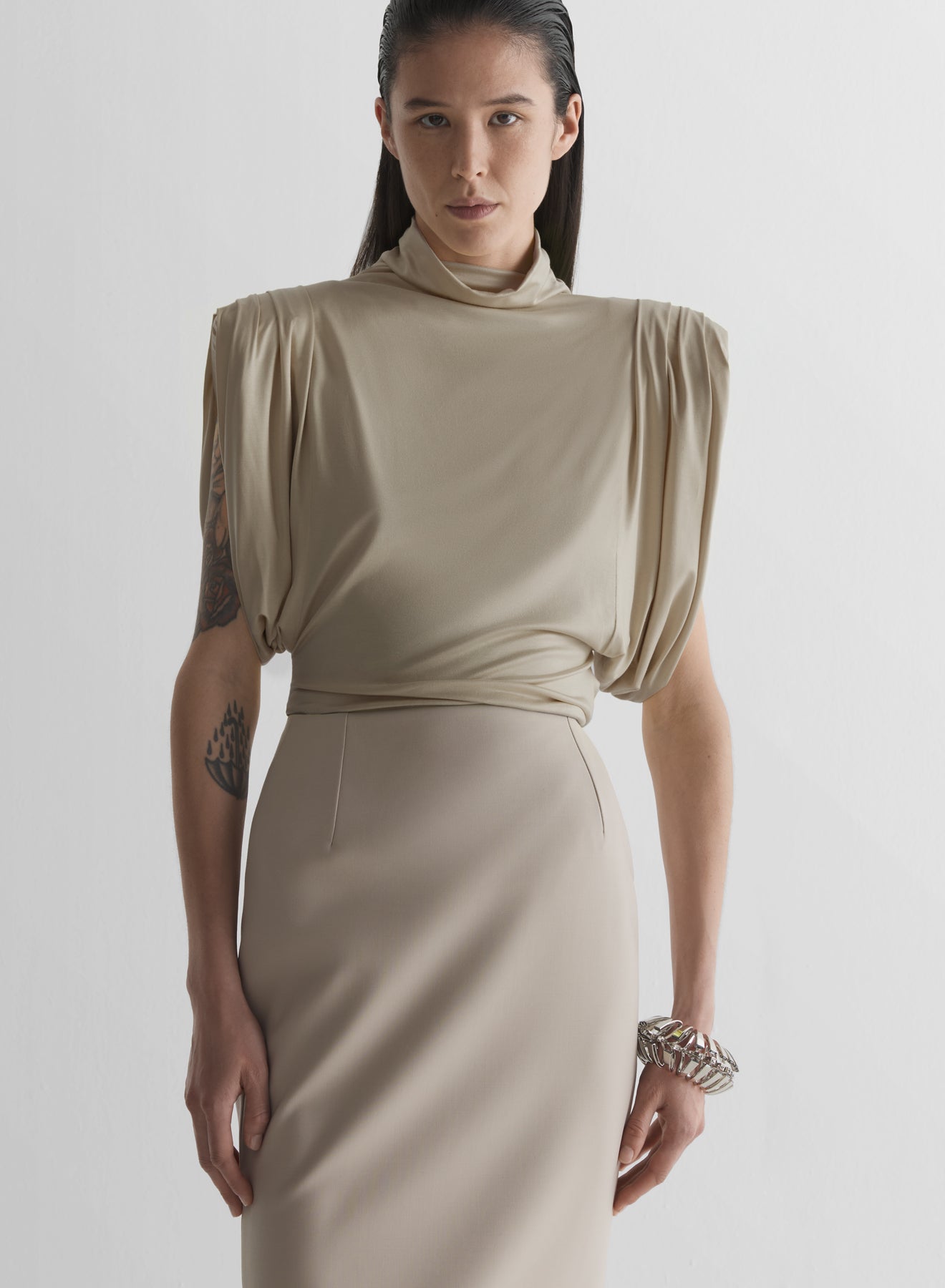 - Draped funnel neck