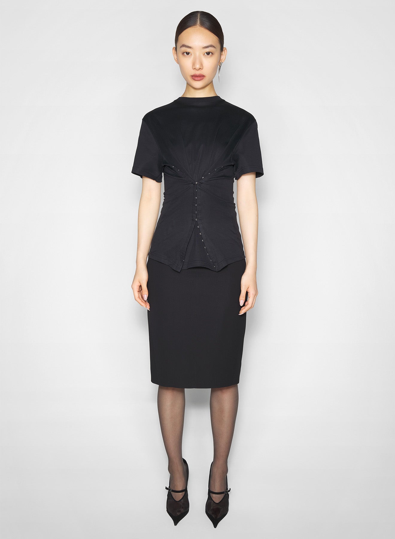 View full detailsblack cinched hook-and-eye t-shirt