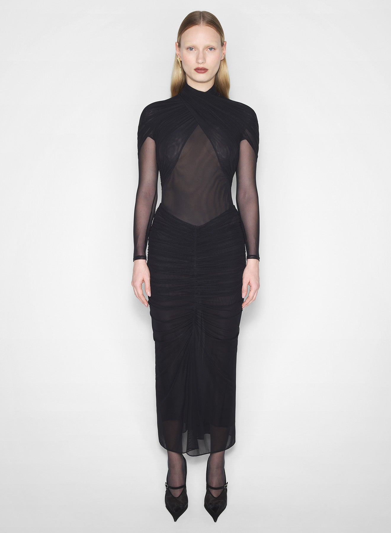 • Fitted bodysuit in transparent mesh