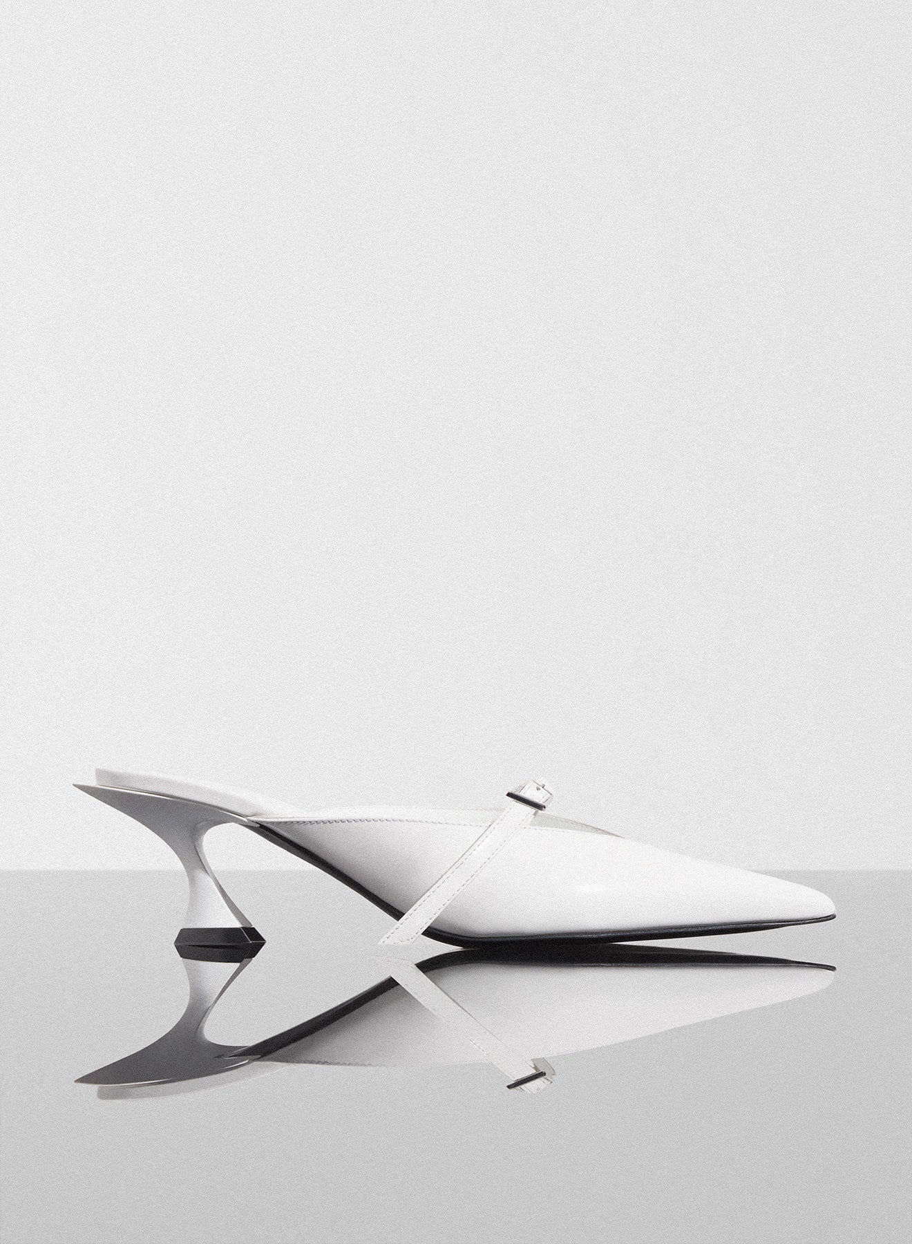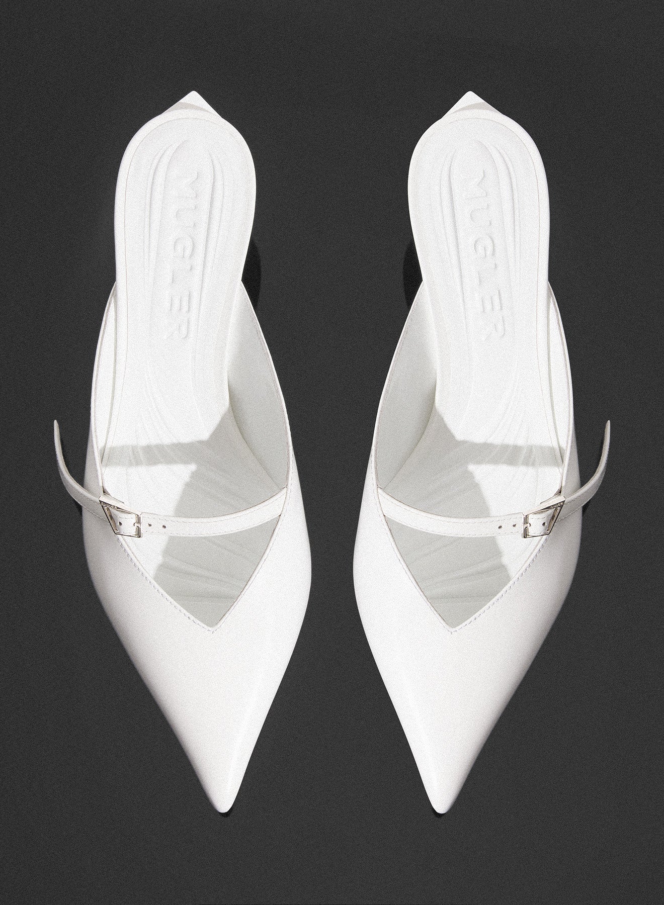 white Fang 55 mules with strap